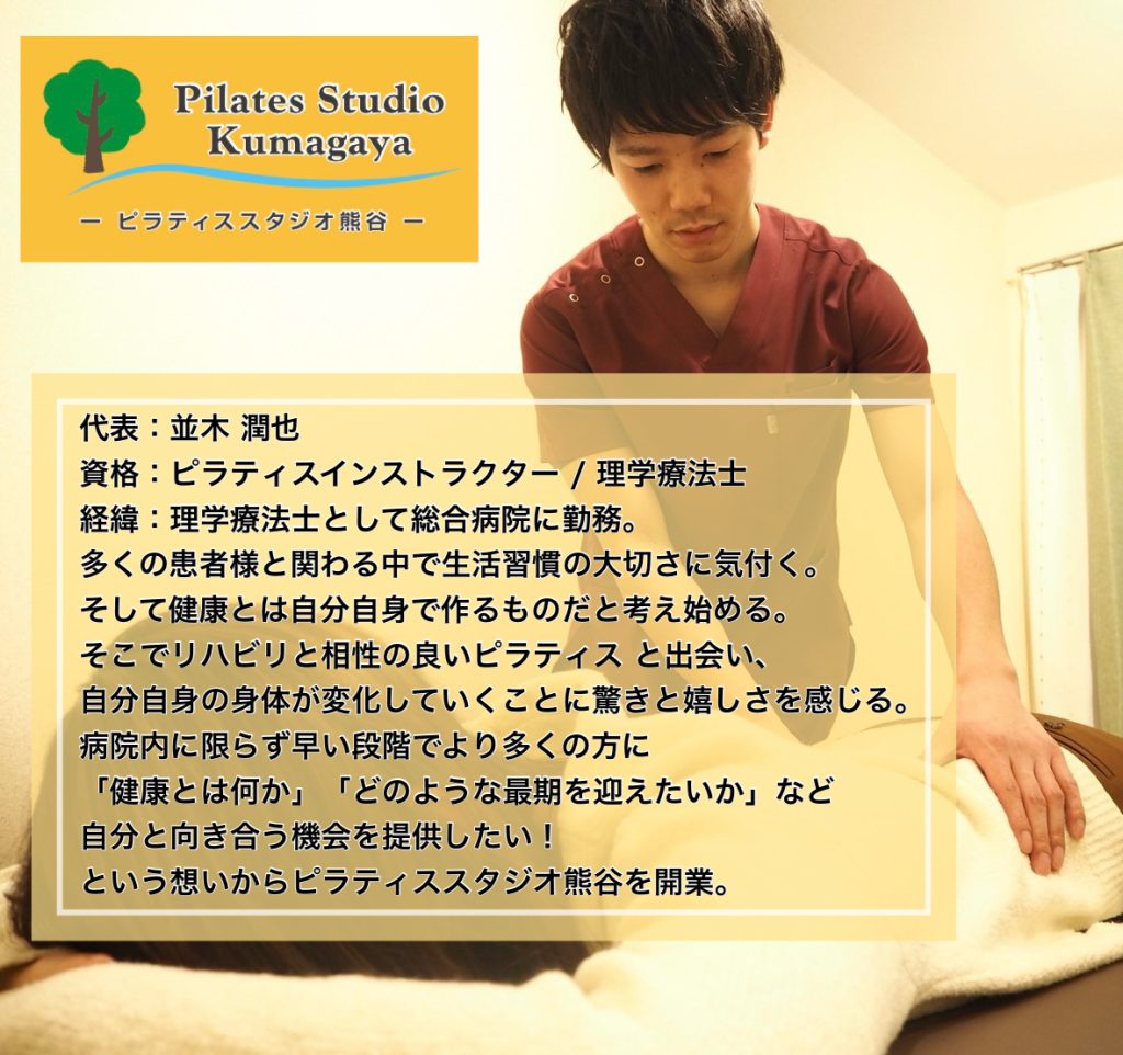 並木先生は理学療法士のお仕事をされながらピラティスの養成講座に通われ、新しい視点で身体の仕組みを学ばれた非常に勉強熱心で努力家の先生です。運動指導も身体の動きを的確に導いてくださるだけでなく、とてもやさしく丁寧な言葉で伝えてくださるので安心してお任せすることができます。